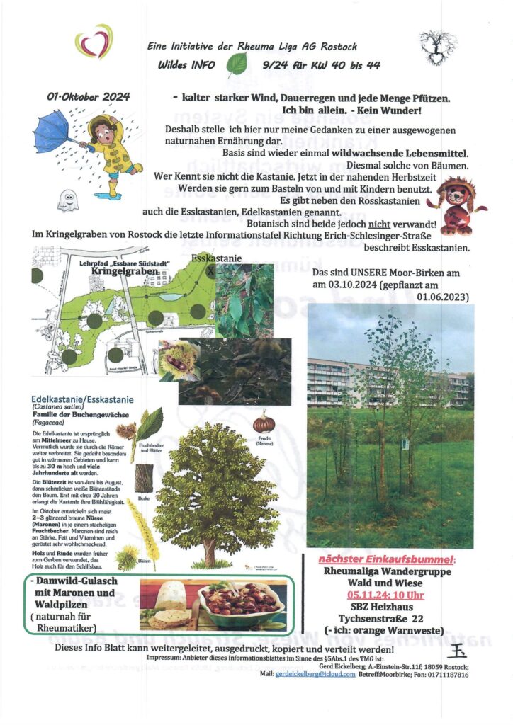 Die nächste Wildkräuterwanderung mit unserem Mitglied der AG Gerd Eickelberg startet am 05.11.2024 um 10 Uhr ab SBZ Heizhaus Tychsenstraße in der Rostocker Südstadt. Dieses Mal geht es um die Schlehe und ihren Nutzen für unsere Ernährung. Interessenten sind gern willkommen. Am 12.11.2024 ist Gerd Eickelberg in der Selbsthilfegruppe Stadtmitte zu Gast. Übrigens: auf dem […]